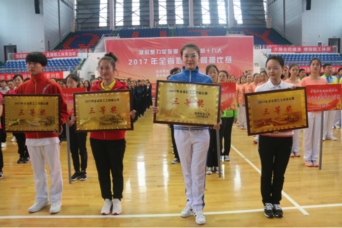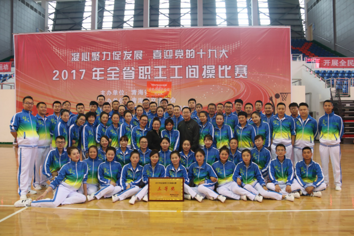 (集團(tuán)黨群部 訊 劉麗萍/文攝)為認(rèn)真貫徹落實(shí)全民健身綱要精神,喜迎黨的十九大順利召開,營造青海物產(chǎn)"全民健身、快樂工作、健康生活"的良好氛圍,展示廣大干部職工積極向上、團(tuán)結(jié)協(xié)作、開拓創(chuàng)新、務(wù)實(shí)奮進(jìn)的精神風(fēng)貌。在集團(tuán)黨委領(lǐng)導(dǎo)的高度重視下,在所屬公司的大力支持下,青海物產(chǎn)集團(tuán)代表隊(duì)于2017年9月26日參加省總工會(huì)舉辦的"凝心聚力促發(fā)展、喜迎黨的十九大"全省職工工間操比賽,在26支參賽隊(duì)伍中脫穎而出,取得第三名(三等獎(jiǎng))的好成績。