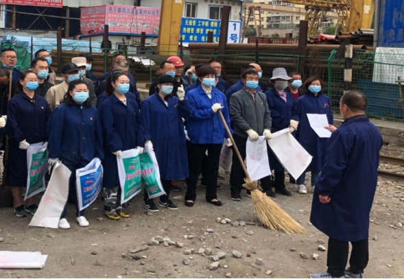 在三名黨支部書記的帶領(lǐng)下,黨員們分工明確、有條不紊,延鐵路專用線由南向北對積存垃圾、建筑垃圾、雜草進(jìn)行清除。活動中,黨員們充分發(fā)揚不怕臟、不怕累的精神,有的掃地、有的撿拾垃圾、有的拔除雜草,呈現(xiàn)出一片熱火朝天的勞動景象。經(jīng)過一個多小時的勞動,鐵路專用線兩側(cè)垃圾得到徹底地清除。