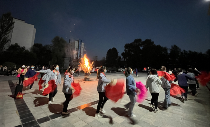 伴隨著歡快的花兒小調(diào),干部職工在月夜里圍繞篝火載歌載舞、歡聚一堂,他們歡樂(lè)幸福的表情感染著駐足觀看的每一位工友們。