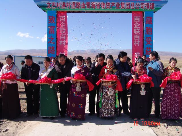 交接儀式上,集團(tuán)公司總經(jīng)理王玉輝、共和縣人大常委會主任尕瑪才讓為元者村黨員活動室、科普文化室、醫(yī)療衛(wèi)生室揭牌之后,與黨委書記白家林、紀(jì)委書記王仁芬、共和縣委常委、組織部長官卻南見等領(lǐng)導(dǎo)為共和縣黑馬河鄉(xiāng)文巴村進(jìn)村道路通車剪彩。集團(tuán)公司黨委書記白家林代表省物產(chǎn)集團(tuán)向共和縣江西溝鄉(xiāng)提前捐送元者村游牧民定居點工程配套資金100,000元。集團(tuán)公司紀(jì)委書記王仁芬、共和縣委常委、組織部長官卻南見、江西溝鄉(xiāng)元者村村長、文巴村村長分別代表捐建方、受捐方致辭發(fā)言。至此,青海物產(chǎn)集團(tuán)在"百企聯(lián)百村"活動中擬投入的1,455,500元,已到位1,255,500元。剩余的200,000元游牧民定居點工程建設(shè)項目捐款將根據(jù)工程進(jìn)度分期轉(zhuǎn)付。