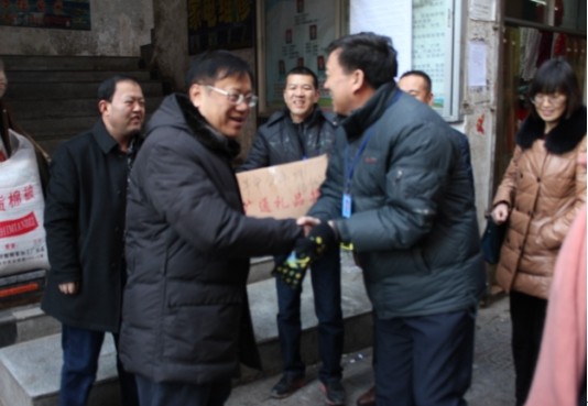 集團領(lǐng)導(dǎo)一行先后來到省三建公司汽配市場、三明市場、付家寨、平安分市場、臨空公司施工現(xiàn)場、朝陽物流和機電市場、配送公司倉庫、現(xiàn)代物流家美家具建材城、長春炭素、康寧公司、工業(yè)投資公司生產(chǎn)車間和項目現(xiàn)場、物產(chǎn)民爆公司倉庫以及物產(chǎn)汽貿(mào)公司上海大眾4S店等生產(chǎn)經(jīng)營第一線,深入了解春節(jié)期間生產(chǎn)經(jīng)營情況、安全生產(chǎn)情況,親切慰問堅守在一線的廣大員工,將慰問品分發(fā)到值守人員手中,帶去集團領(lǐng)導(dǎo)暖暖的問候和衷心的祝福。每到一處,集團領(lǐng)導(dǎo)同一線員工一一握手,詳細詢問節(jié)日期間值班和職工生活安排情況,同時對堅守崗位的職工給予充分的肯定和高度的贊揚,為他們在節(jié)日期間舍小家為大家的奉獻精神表示衷心的感謝。王玉輝總經(jīng)理情深意長地說:正是因為有了一線員工的勤奮和努力,才確保了集團系統(tǒng)生產(chǎn)經(jīng)營的平穩(wěn)運行,感謝大家!同時要求所屬公司領(lǐng)導(dǎo)春節(jié)期間一定要安排好職工的生產(chǎn)生活,并做好各項安全防范工作。